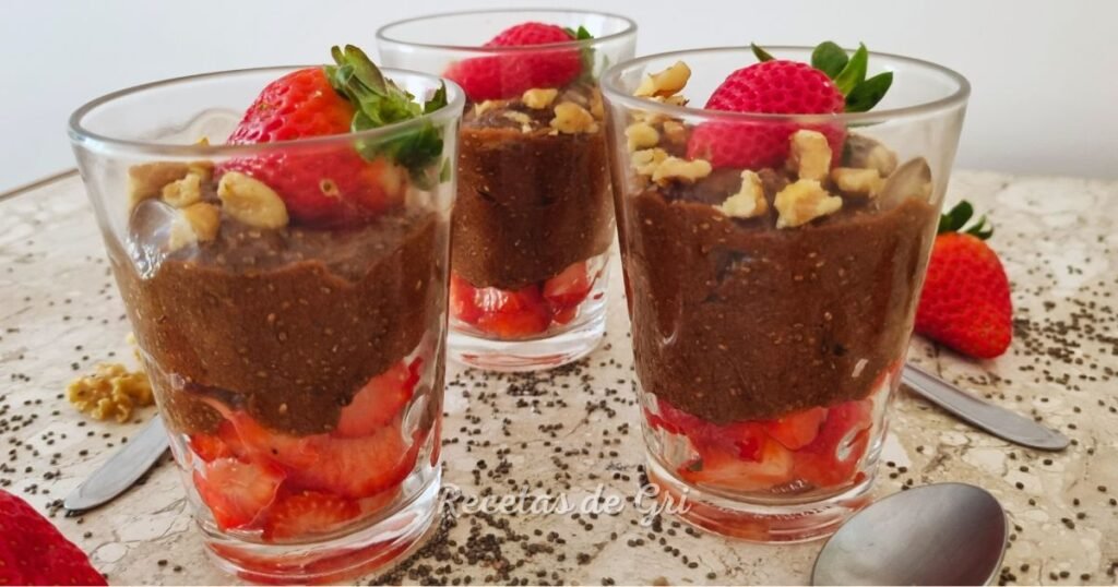 Esta receta, no lleva cocción y tiene todos los beneficios nutricionales de las semillas chía, la fruta fresca, el cacao natural y los frutos secos.